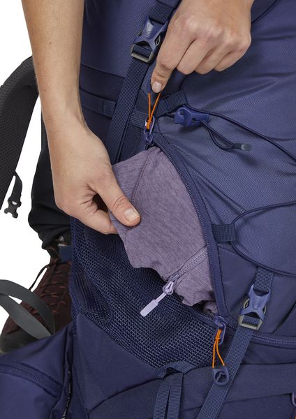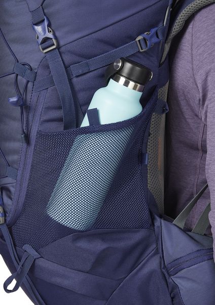 - Side mesh pockets made of stretch material with access from two sides