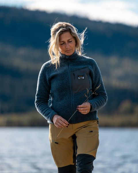 "Experience comfort and functionality with the Flok Wool Ws Pile from Lundhags, the perfect midlayer for women who love hiking, running or longer trekking tours. This jacket combines the benefits of merino wool and polyester to offer you an optimal outdoorexperience. The merino wool ensures excellent heat regulation and has an odor-inhibiting effect, while the polyester is responsible for additional durability and quick drying."