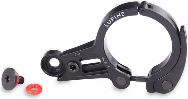 "The Flexmount quick release 31.8mm from Lupine is the ideal solution for all those who want to mount their Lupine battery lights safely and easily on their bike. This adjustable aluminum bracket is specially designed for stems that have a distance of 28u201340 mm from the handlebar to the center of the hole. Thanks to its flexible adaptability, it is perfect for different handlebar diameters, be it 31.8 mm or 35 mm."