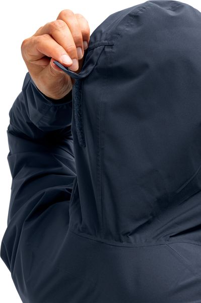 "The jacket impresses with its light weight and compact pack size, which means it fits easily into any rucksack and is always ready to hand. The individually adjustable hem and hood prevent wind and moisture from penetrating, so you are well protected whatever the weather. Two practical zipped pockets also offer plenty of space for important items such as a smartphone or key."