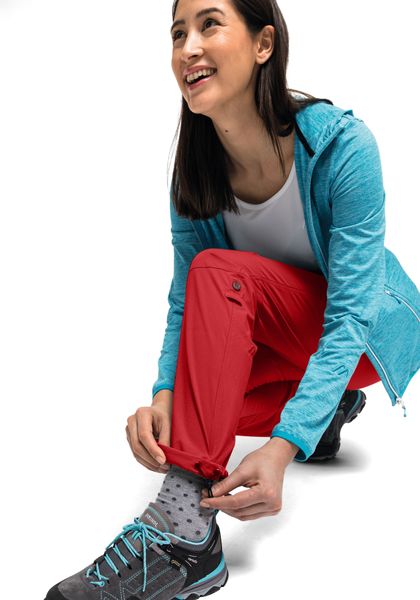 "Functional women's hiking trousers with roll-up function, elastic material and environmentally friendly impregnation."