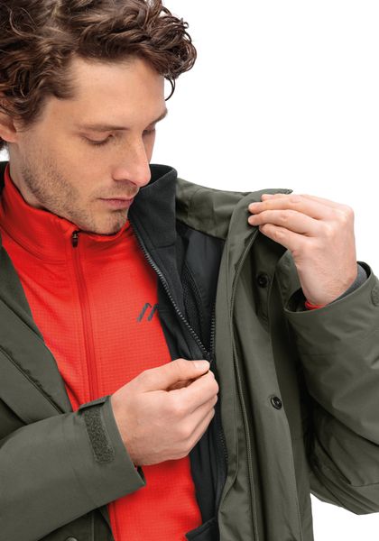 "Thanks to the removable microfleeceinner jacket, the METOR 3in1 Men is extremely versatile. On cooler days, it offers pleasant warmth, while it can also be worn solo on warmer days. The adjustable hood and individually adjustable cuffs and hem ensure that the jacket fits perfectly and adapts to your movements. The sporty cut guarantees maximum freedom of movement so that you can concentrate fully on nature on your hikes"