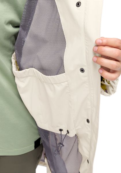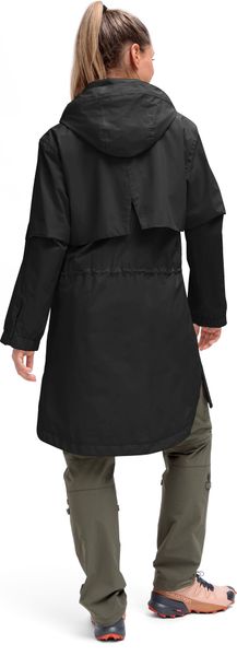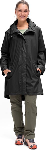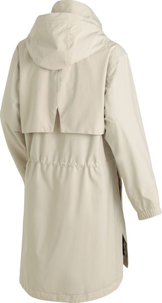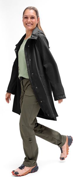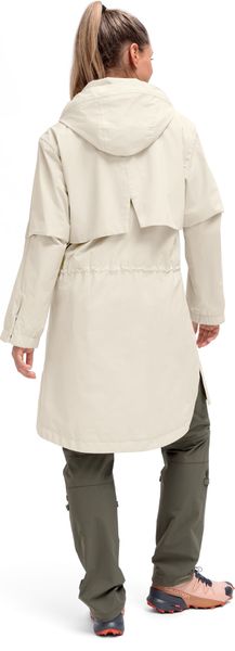 "In addition to its functionality, the Metor Coat rec Women impresses with practical details such as two spacious inner pockets and two side pockets that offer enough space for important items. The dropped shoulders and regular fit give the coat a modern look that cuts a fine figure both on hikes and in the city"