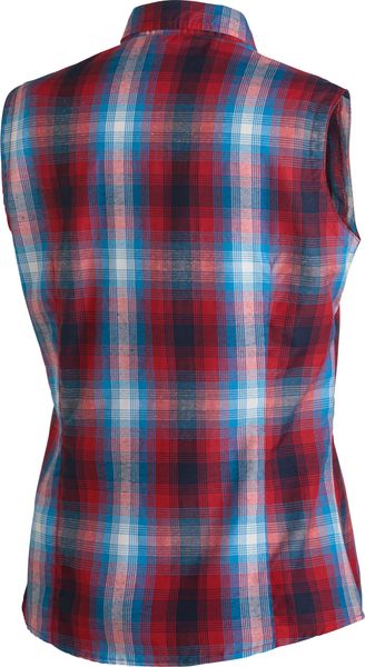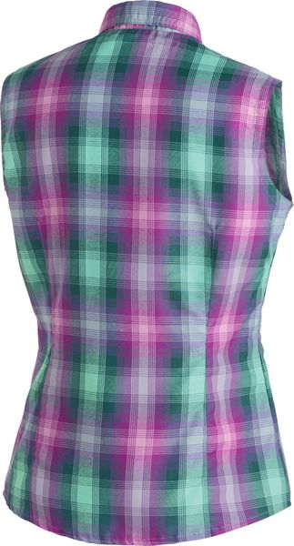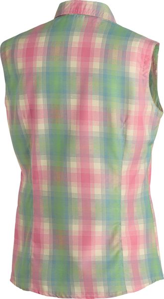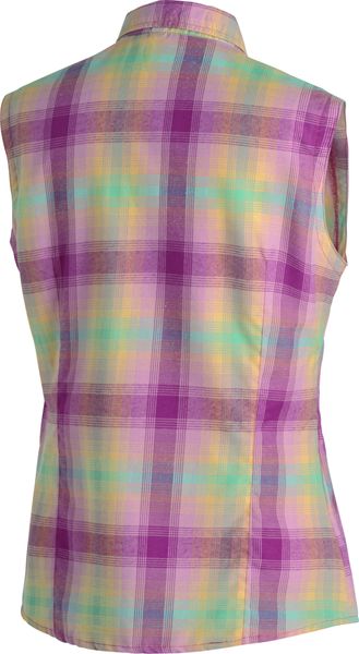 "Women's sleeveless blouse in a checked design, quick-drying and breathable for summer outdoor activities."