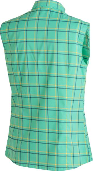 "Women's sleeveless blouse with quick-drying, odor-inhibiting properties, ideal for hiking and leisure."