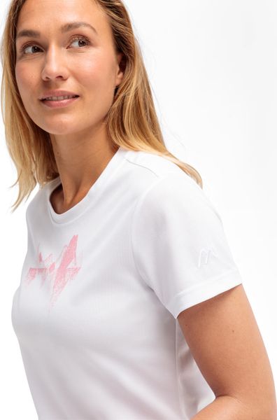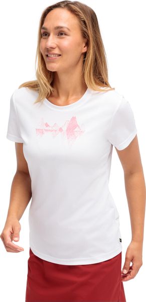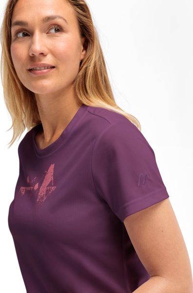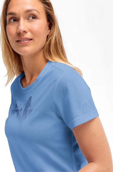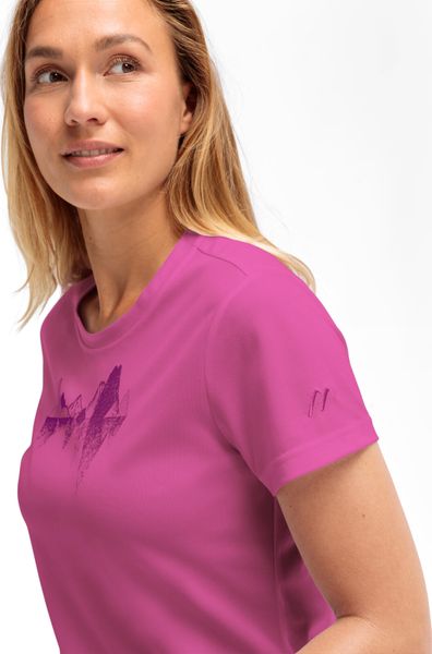 "Comfortable and quick-drying outdoor shirt for women with recyclable materials and a stylish mountain print."