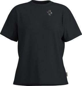"The CASSETTEM. T-shirt by Maloja is a loose-fitting basic made from high-quality organiccotton. This ladies-T shirt with cropped sleeves and a wide ribbed collar not only offers comfort, but also an urban style that is perfect for everyday wear and the workplace. The front of the shirt features a small, hand-drawn print depicting a dove with a heart and the Maloja lettering. The large print on the back underlines the unique character of this shirt and makes it a real eye-catcher in any wardrobe."