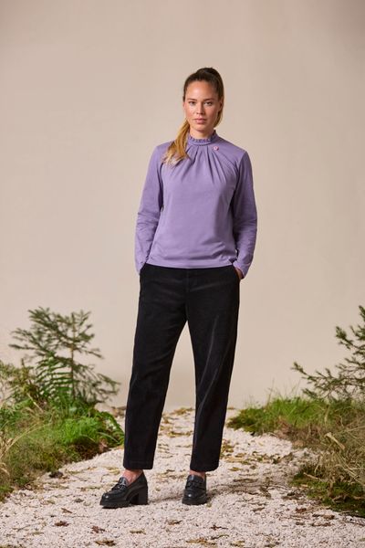 "Stylish women's trousers made of soft wide corduroy with unique color effects for everyday urban life."