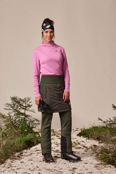 "The HOCHFEILERM. by Maloja is the ideal companion for demanding ski tours and cross-country skiing experiences. Equipped with the weatherproof and highly breathable cembrau00u00ae STORM material, this hybrid skirt offers optimum protection against wind and coldu00e4lte. The PrimaLoftu00u00ae Gold insulation ensures excellent thermal performance, while the Thermal Stretch ECO inserts on the sides provide freedom of movement and additional comfortu00e4."