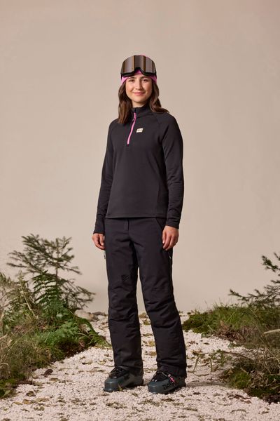 "The NASPAEM. by Maloja is the ideal midlayer for women who love ski touring and freeskiing. Made from elastic and quick-drying Stripe Stretch Eco, this half-zip offers excellent thermal performance and a high level of comfort. Whether you're freeriding or ski touring, this midlayer ensures that you always feel comfortable. The material efficiently wicks away moisture and dries quickly, which is particularly beneficial during intensive activities"