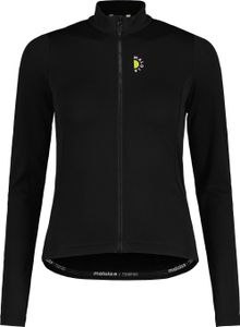 "This slim-fit ladies cycling jersey from Maloja is the ideal companion for cooler days on the bike. Made from warm, brushed material on the inside, it not only offers protection from the cold, but is also extremely comfortable to wear. The snug-fitting cuffs and siliconized waistband ensure that the jersey fits perfectly and does not slip, even during intensive cycling tours"
