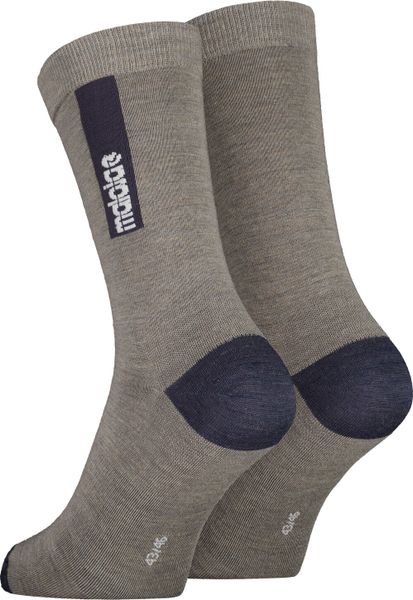 "The PERONEM. Sports socks from Maloja are the ideal choice for anyone who values comfort and functionality. These unisex socks are made from a temperature-regulating merino blend, which not only ensures a pleasant foot climate, but is also quick-drying. This makes them particularly suitable for sporting activities where perspiration is not uncommon. The modern length and Maloja lettering on a contrasting block stripe give the socks a fashionable look that blends in perfectly with any sports outfit. Whether you're running, cycling or at the gym, you'll be perfectly equipped with these socks."