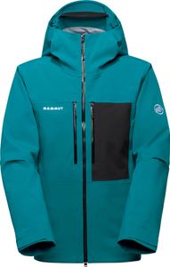 "Thanks to the waterproof Mammut Dry Tour 3-Lagen laminate, the jacket reliably protects against the wet, while the helmet-compatible hood and the "X-Vented" Underarm ventilation ensure optimum comfort and ventilation. Practical details such as the water-repellent YKKu00ae VISLONu00ae 2-Wege-front-Reiu00fcsseals and the adjustable hood make it particularly functional. The jacket has numerous pockets, including two chest pockets, a sleeve pocket and an inner pocket made of elastic mesh material, which offer plenty of storage space."