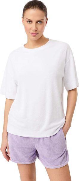 "Made from a soft terrycloth material consisting of a blend of viscose from bamboo, cotton and recycled polyester, these shorts are not only particularly comfortable to wear, but also breathable and elastic. The sturdy and slightly brushed surface gives them a unique look and makes them ideal for loungeactivities, beach visits and light workouts."