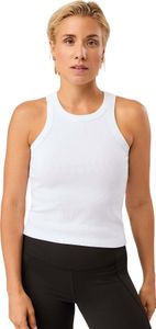 "Elegant tank top made of organic cotton with a racerback and fine ribbed texture for a sporty, feminine silhouette."