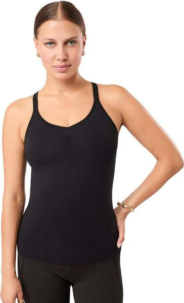 "Sustainable top made of TENCELu2122 with integrated support bra, elasticated double straps and fashionable back details."