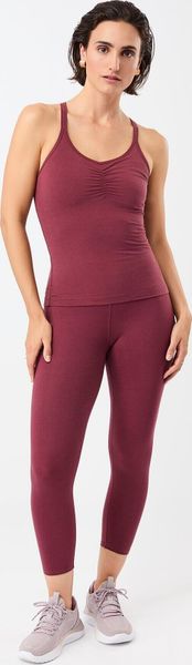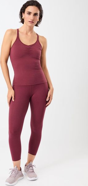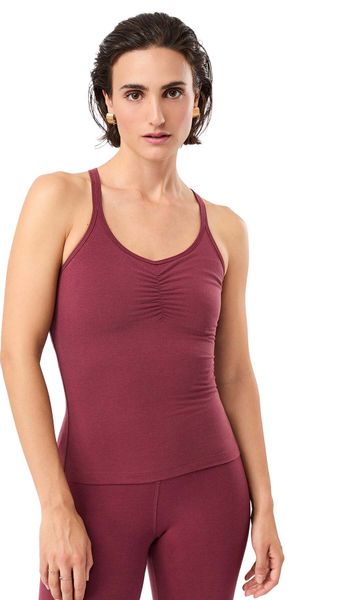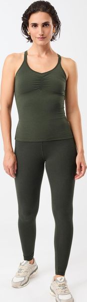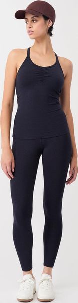 "The gathering in the bust area gives the top a feminine touch and ensures a flattering fit. The crossed straps at the back are not only a fashion highlight, but also provide additional stability during training. With a body height of 1.70 m, the close-fitting top reaches up to the hips and is ideal for yoga, Pilates or everyday use."