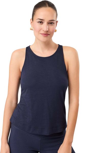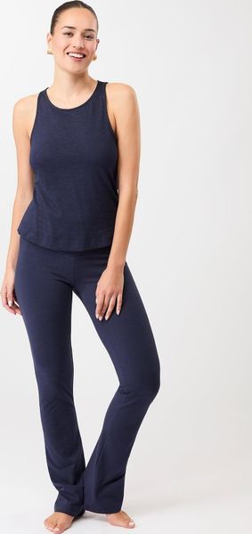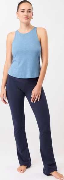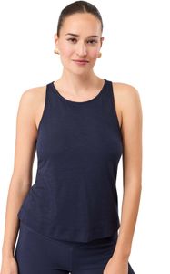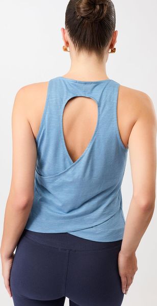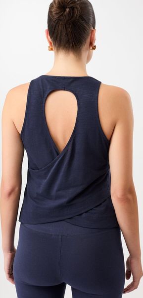 "Sporty top with cross-back detail and soft cotton-modal blend for freedom of movement and comfort."