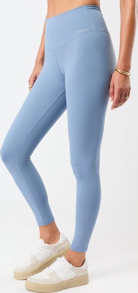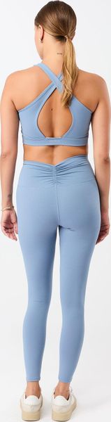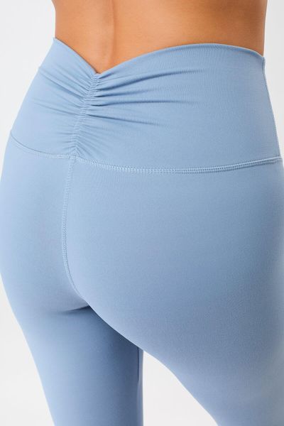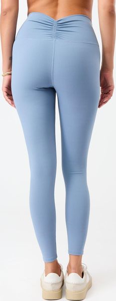 "High-quality leggings made from recycled material with a high waistband and feminine gathering, ideal for everyday wear and leisure."