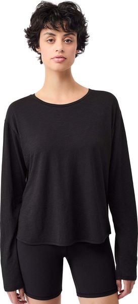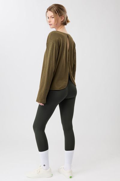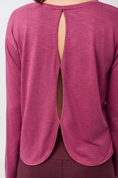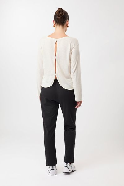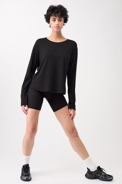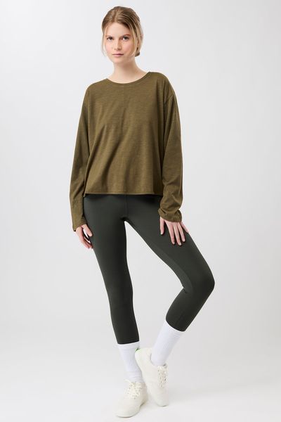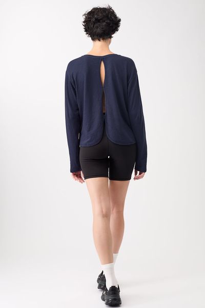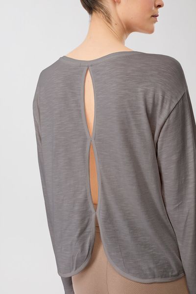 "A particular highlight of this top are the two openings on the back, which not only make a fashion statement, but are also ideal for combining with an active bra. These details make the long sleeve top a versatile companion that is suitable for both sporty use and relaxed leisure activities"