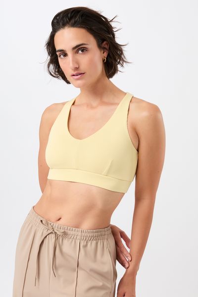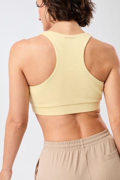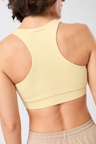 "The design of the Rib Bra 2.0 impresses with a deep Vneckline and a racerbackdesign that guarantees full freedom of movement. Wide straps and an elastic underbust band provide optimum support, while the longer cut ensures additional comfort. This bra is particularly suitable for cup sizes A to C and offers a perfect balance between functionality and fashionable design."