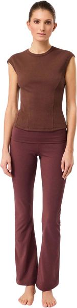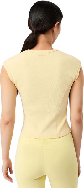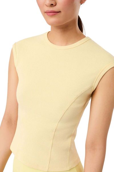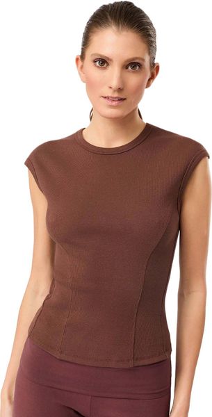 "The Ribbed Sport Top from Mandala is the perfect choice for active women who value both style and functionality. With its high round neckline and short sleeves accentuated by sporty seams, this top not only offers a modern look, but also a hip fit that is ideal for a body height of 1.70 m. The fine ribbed structure made from GOTScertified organiccotton guarantees not only sustainable production, but also a pleasant feel on the skin"