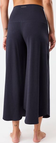 "The Tulip Pants from Mandala are the perfect choice for anyone who wants to combine comfort and style. These pants are suitable for every figure type and offer a special eye-catcher thanks to their asymmetrical hem. The high rise cut with a wide roll-down waistband accentuates the waist and ensures a flattering fit. The 7/8-length and wide, slightly flared leg create a flowing silhouette that can be worn both in everyday life and for special occasions. Whether you combine them with a casual top or an elegant blazer, the Tulip Pants are guaranteed to be an eye-catcher."