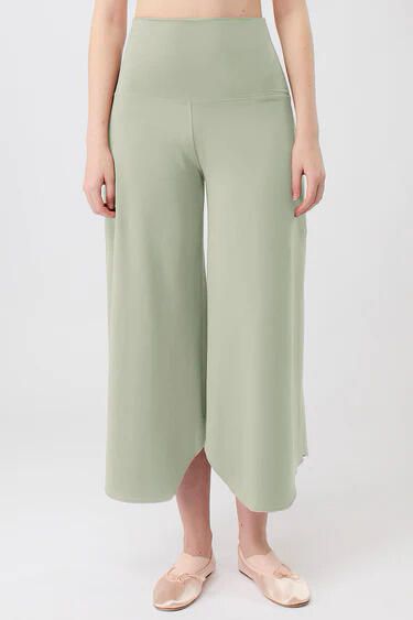 "7/8-lengths with asymmetric hem Wide-cut, slightly flared leg for a flowing silhouette Wide roll-down waistband u2013 can also be worn as a high rise Suitable for different figure types Soft feel for a comfortable fit Made from sustainable TENCELu2122"