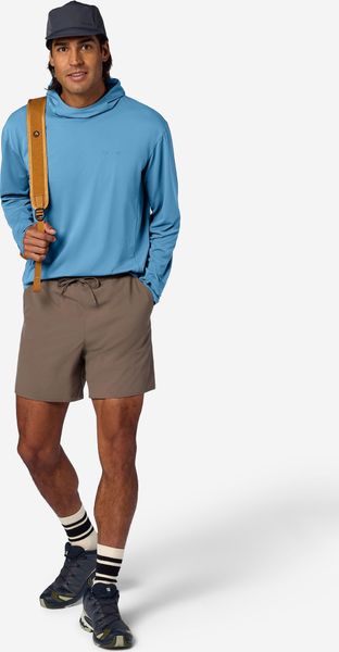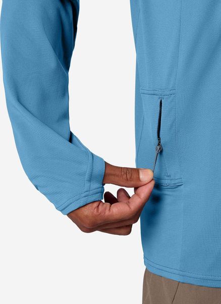 "The well-designed hood and thumbholes provide additional protection for your head and hands, while the dropped shoulders and hood increase comfort under a rucksack or climbing harness. The hidden zipper pocket on the side is practical for securely stowing small items and allows easy access even when wearing a harness. The regular fit ensures freedom of movement and makes this hoody the perfect choice for any activityu00e4t."