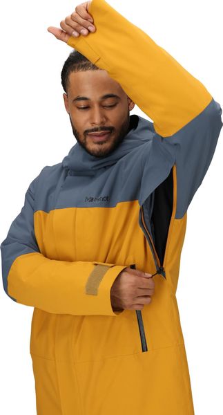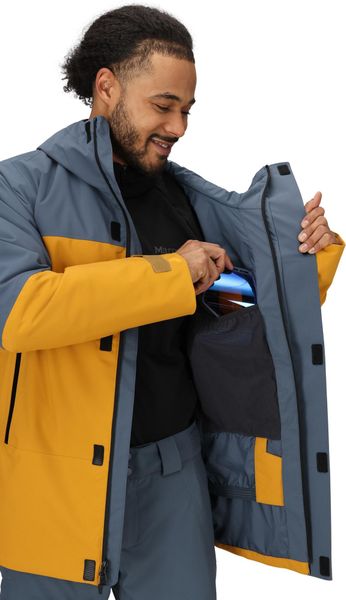 "The Elevation Jacket from Marmot is the ideal companion for all men who feel at home in the snowy mountains and are looking for adventure. This jacket is specially designed for activities such as snowboarding, ski touring and skiing and impresses with its sustainable and innovative technology. Thanks to Marmot NanoProu2122 Eco technology, it offers a lightweight, breathable and waterproof layer that repels rain and keeps you dry inside and out. The fully taped seams guarantee additional protection from the wet, even in extreme weather conditions."