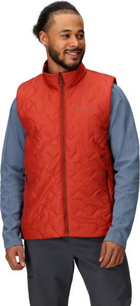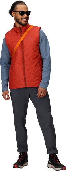 "The Monoquilt Vest from Marmot is the perfect choice for men who want reliable warmth for outdoor activities such as climbing and snowshoeing. With its unique quilting pattern, it reduces cold spots and improves packability so that the warmth is optimally stored. The vest is made from REPREVEu00aeuu00dfen material, which is made from 100% recycled polyester, and is equipped with 60 g PrimaLoftu00ae Gold insulation, which is also made from recycled polyester. This combination not only ensures a comfortable fit, but also sustainability"