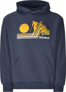 "The Retro Skiier Hoody from Marmot is the ideal companion for men who appreciate the urban and relaxed lifestyle. Made from a blend of cotton and recycled polyester, this hoody offers maximum comfort and is perfect for everyday wear. The double-layered hood provides additional comfort and warmth, while the hoodie pocket offers practical storage space. The ribbed cuffs and hem guarantee an optimal fit and comfort. The stylish screen print graphic gives the hoody a unique retro look that is equally at home around the campfire or strolling through the city."
