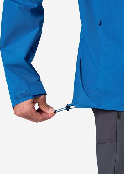 "A particular highlight of the jacket is the moisture-wicking DriClimeu00eae lining, which provides additional comfort, while the 100% taped seams and the CO-DWR treatment (durable water repellent) on the fabric surface ensure maximum protection against wet weather. The fixed hood with drawcord adjustment offers additional protection in bad weather, while the adjustable hood and raglan sleeves ensure optimum freedom of movement, even with a rucksack."
