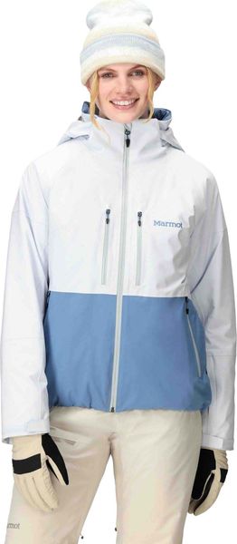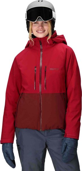 Enjoy peaceful early morning runs before the slopes fill up with the Women's Pace Ski Jacket from Marmot. This versatile women's jacket is specially designed for snowboarders and combines functionality with comfort. The 2-layer waterproof and breathable Marmot MemBrain® fabric with a water column of 20,000 mm and a breathability of 20,000 g (MVTR) keeps you reliably dry and reduces condensation inside. The fully taped seams prevent water from penetrating, while the PrimaLoft® Black Insulation ECO provides lightweight, breathable warmth and wind resistance.