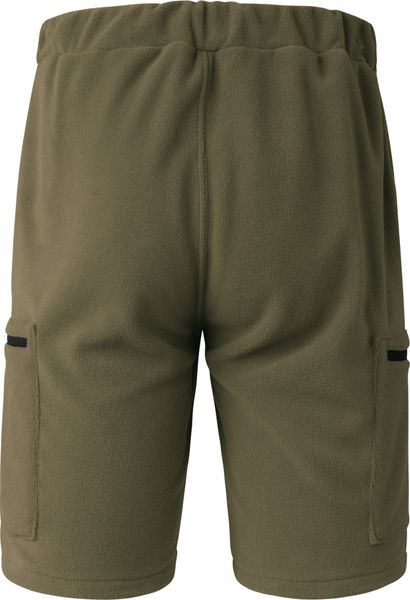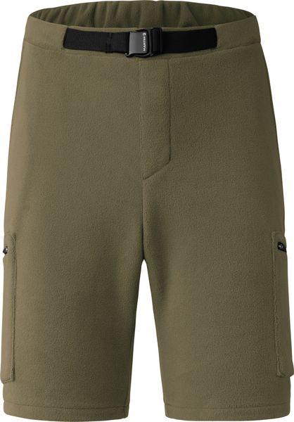 "Comfortable and environmentally friendly fleece shorts made from recycled polyester with practical pockets and an adjustable belt."