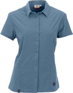 "Elastic women's blouse with UV protection, ideal for hiking and traveling, combines functionality with a modern check pattern."