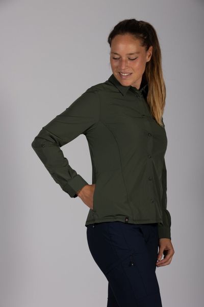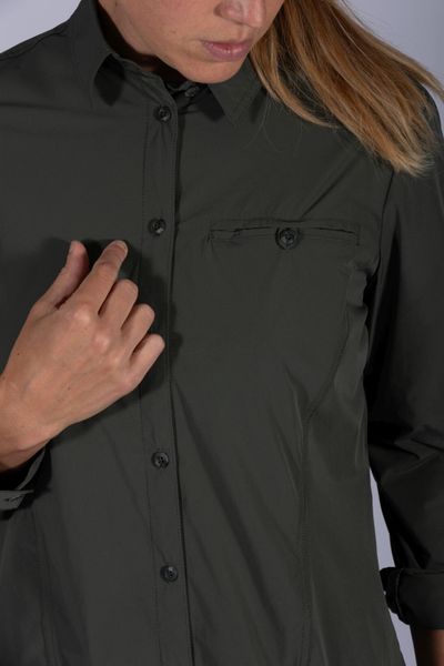 "Lightweight, quick-drying women's blouse with UV protection 50+ and practical roll-up sleeves for everyday wear and outdoor adventures."