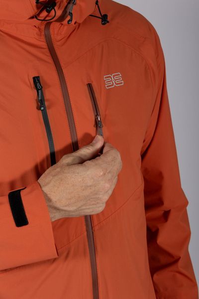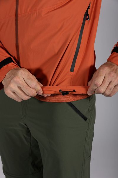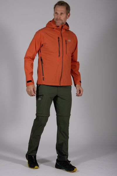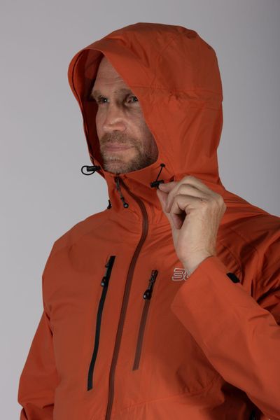 "Lightweight, waterproof and breathable trekking jacket with adjustable hood and welded seams for men."