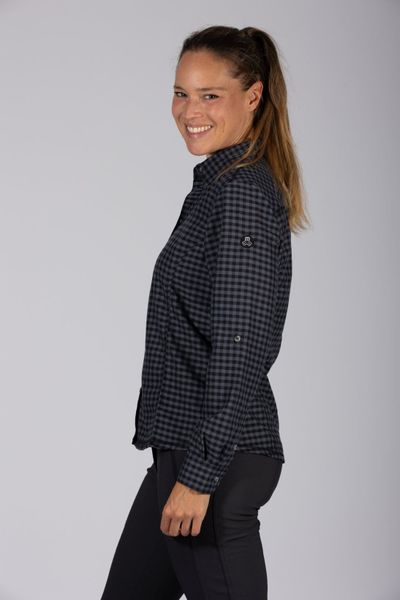 "Versatile checked flannel blouse for women, ideal for outdoor activities thanks to its breathable, warming and quick-drying properties."