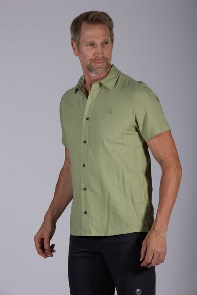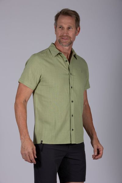 "Fashionable short-sleeved shirt in a linen look, quick-drying and breathable, ideal for leisure, hiking and traveling."