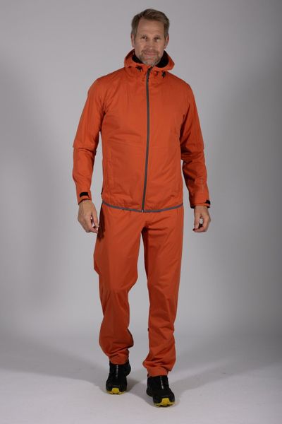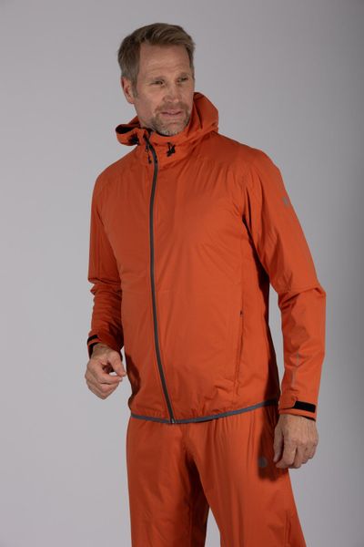 "Lightweight, windproof rain jacket with adjustable hood and pack sack, ideal for men when hiking."