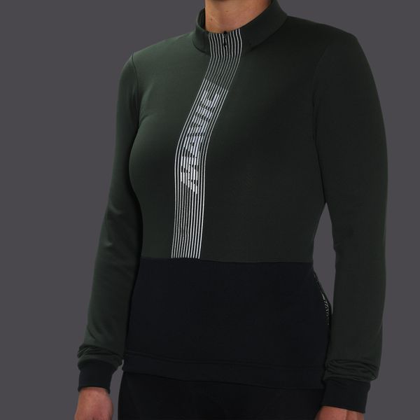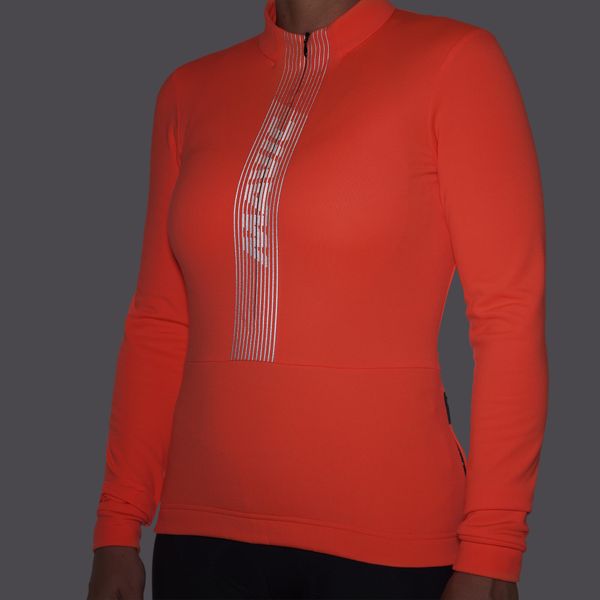 "Stylish, windproof thermal cycling jersey for women with reflective details and practical pockets for shorter rides."