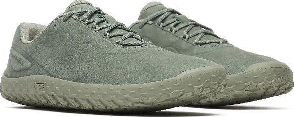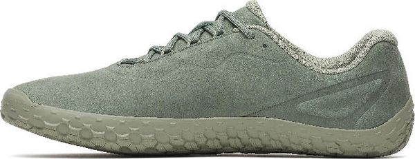 "Experience the ultimate barefoot experience with the Vapor Glove 7 LTR from Merrell. This unisex shoe combines state-of-the-art technologies with sustainable materials to offer you an incomparable wearing experience. The high-quality leather upper not only provides an elegant look, but also additional warmth and comfort thanks to the cushioning. The padded collar and integrated insole made from 30% recycled EVAfoam provide additional support and cushioning, while the breathable mesh lining made from 100% recycled material ensures a pleasant foot climate"