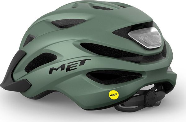 "The Crossover Mips helmet is made with an inmold polycarbonate shell and EPS liner for exceptional comfort and a secure fit. The internal air channels and 17 ventilation openings improve ventilation and comfort. An integrated anti-insect net protects against unwanted intruders, while the MET Safe-T Sport fit with a 360u00b0 head strap avoids pressure points. The integrated MET rear light with four lights and a runtime of up to 60 hours provides additional visibility."