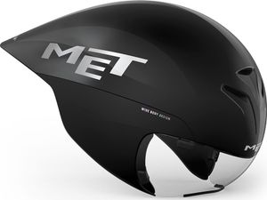 - "In-mold polycarbonate shell with EPS liner Wide Body Design": "larger outer shell for both sizes to maximize aerodynamics Linear Tail Design": "allows for a lower head position while riding MET Safe-T Advanced Fit System 360u00b0 head belt with vertical and occipital adjustments for a customized fit Air Lite straps with adjustable dividers for enhanced aerodynamics and comfort Low Drag inlets strategically positioned to reduce air turbulence 4 vents with an internal air channeling system to improve ventilation and comfort MET Mag-Clip Shield | Clear Hand-washable comfort pads Helmet soft bag included"