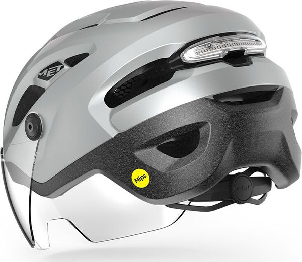 - "In-mold polycarbonate shell with EPS liner Full polycarbonate wrapped EPS liner to enhance durability NTA 8776 certification specifically for eBike use Extended head coverage for deeper head protection MIPS-C2u00ae rotational management system to increase protection against certain impacts Integrated adjustable polycarbonate shield to protect eyes from wind, dust and insects MET Magnetic USB LED Light to ensure you are always visible on the road MET Safe-T Heta Fit System 360u00b0 head belt to avoid pressure points on the head, Vertical adjustment to maximize adjustability Exceptionally comfortable and secure on the head thanks to refined internal shape Anti-insect net embedded into the front vents Hand washable comfort pads 13 Vents, Internal engineered air channeling to improve ventilation and comfort Fidlocku00ae Magnetic Buckle makes it easier to secure the helmet Straps with adjustable dividers give you an individual fit Reflective rear decal to enhance visibility"