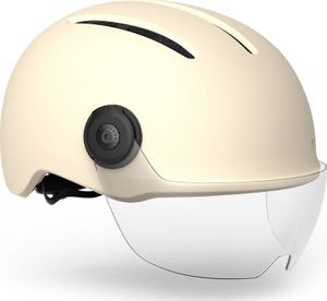 "The modern and minimalist design appeals to a new generation of cyclists who are redefining urban mobility. The helmet is equipped with an adjustable polycarbonate lens that protects against wind, dust and insects and a rechargeable USB-LED light on the back that illuminates in different modes to increase visibility. The sturdy u00e4uu00dfre PC shell and the fully polycarbonate-wrapped EPS inner lining increase the helmet's durability against impacts and small damageu00e4u00dfen."