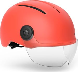"The modern and minimalist design appeals to a new generation of cyclists who are redefining urban mobility. The helmet is equipped with an adjustable polycarbonate lens that protects against wind, dust and insects and a rechargeable USB-LED light on the back that illuminates in different modes to increase visibility. The sturdy u00e4uu00dfre PC shell and the fully polycarbonate-wrapped EPS inner lining increase the helmet's durability against impacts and small damageu00e4u00dfen."