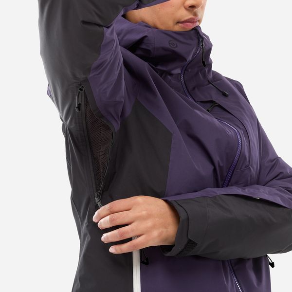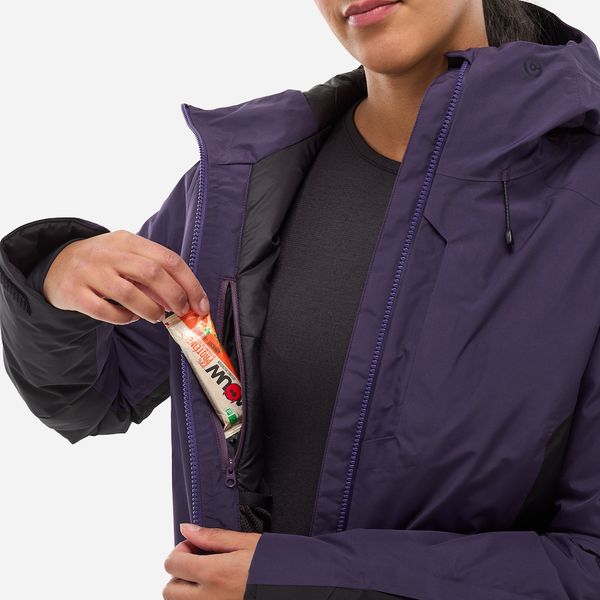 "Windproof, warm women's ski jacket with recycled Primaloftu00u00ae insulation, ideal for ski tours and freeskiing adventures."