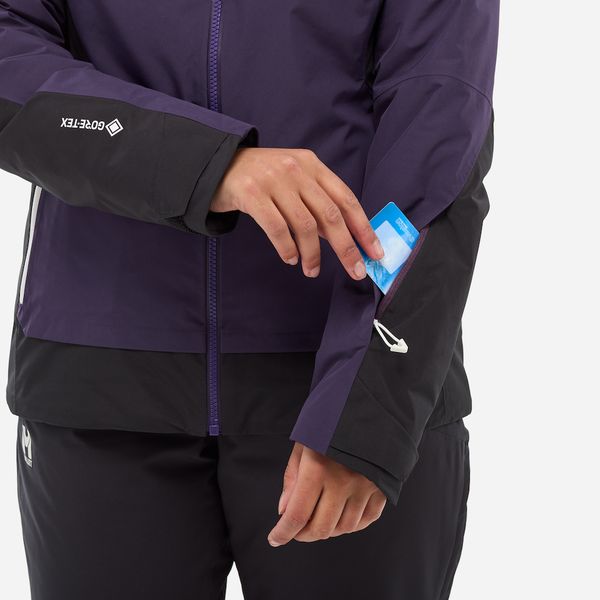 "A particular highlight of the Cosmic Warm GTX Jacket W is the large number of practical pockets that have been specially designed for skiers. There is a chest pocket with a separate compartment for your smartphone, a zipped pocket on the sleeve for your ski pass and inside pockets for your mask and sunglasses. The detachable snow guard and adjustable cuffs ensure a perfect fit, while the pre-shaped elbows and adjustable hood with sun visor provide additional comfort."